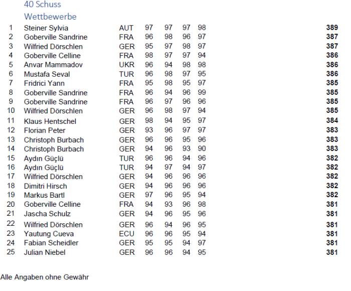 The effort increases with the increasing number of participants. However, the competition format and the reporting of results via the web form has proven its worth. With a few exceptions, I was always able to send the result lists 1-2 hours after the end of the competition, and in 2021 even consistently as an age group and overall rating. The special challenges such as a 100 shot competition are very well accepted and there is a higher number of participants than in the competitions with the usual number of 40 or 60 scoring shots, so there will be 40, 60 or 100 shot competitions again in 2022.